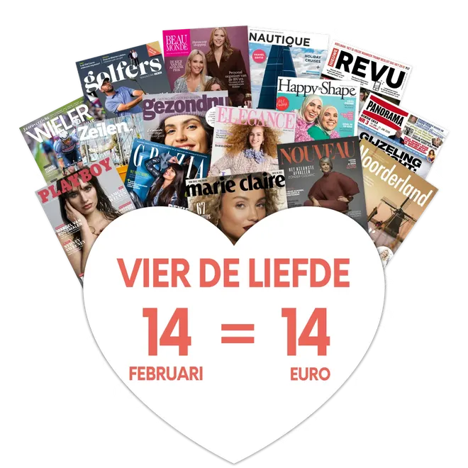 Valentijnsdag is het perfecte moment om iemand blij te maken of om jezelf eens lekker te verwennen. Daarom hebben we een speciale actie: meerdere edities voor maar €14! Hoeveel edities je ontvangt verschilt per titel. Scroll iets verder en klik op je favoriete tijdschrift om te zien hoeveel edities je voor dit symbolische bedrag ontvangt.